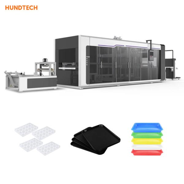 3. high speed thermoforming machine can work perfectly for PP, PS, BOPS, PE, PVC, APET, or CPET, due to the advanced automatic servomotor control system.